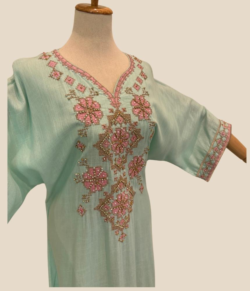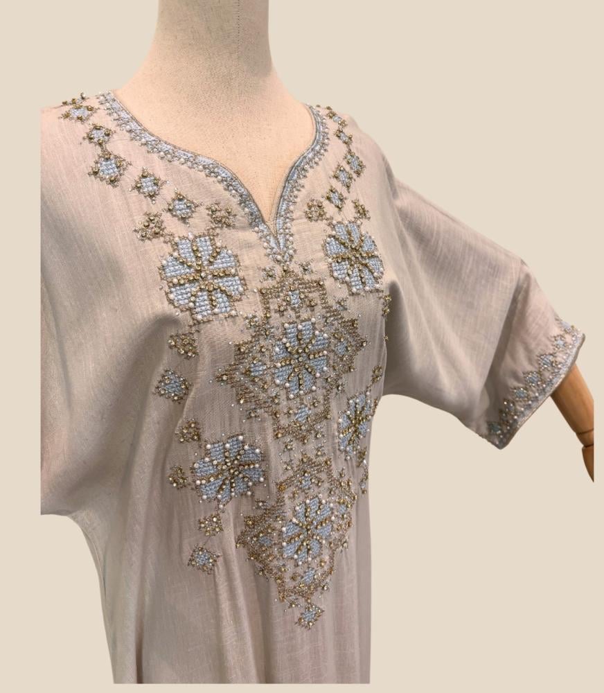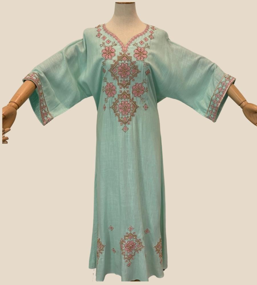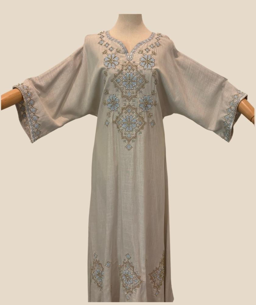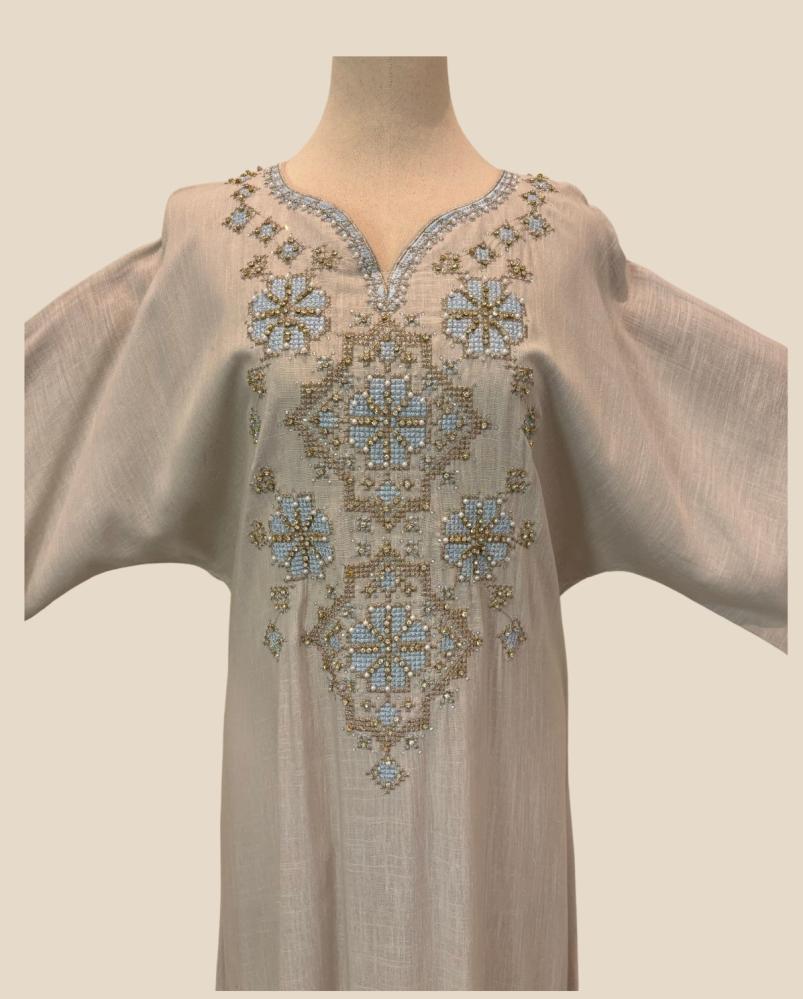 تألقي بأناقة فريدة مع جلابيتنا المصنوعة من اللينن والمطرزة بإتقان! تجمع هذه الجلابية بين خامة اللينن الفاخرة ونقوش التطريز الرائعة، مما يمنحك إطلالة أنثوية بلمسة من التراث. تصميمها المريح يجعلها خيارًا مثاليًا للمناسبات الخاصة أو للاستخدام اليومي لمن تحب التميز والأناقة. استمتعي بتفاصيلها الفريدة وملمسها الناعم طوال اليوم.